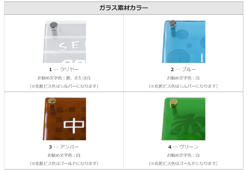 表札 PG-2-4B ピュアガラス W約150×H約150mm