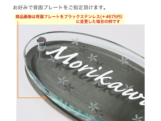 ●オーバルグラス表札は、背面プレート(バックプレート)部分をお好みで選択することができます。背面プレートのタイプは