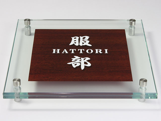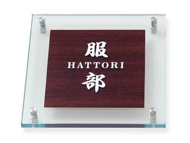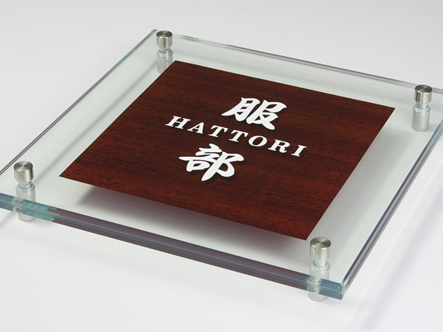 表札 YW-8-534(ガラス+木目シート) やわらぎ W200×H200mm