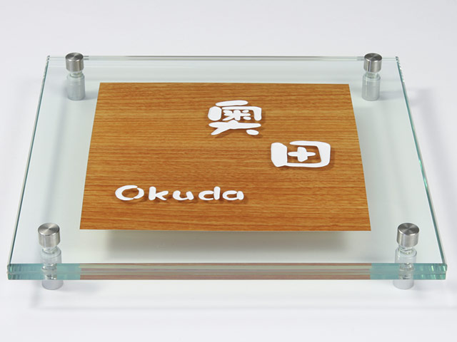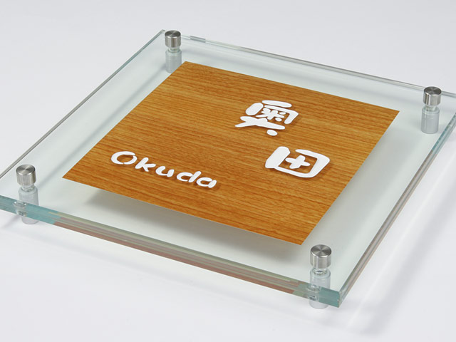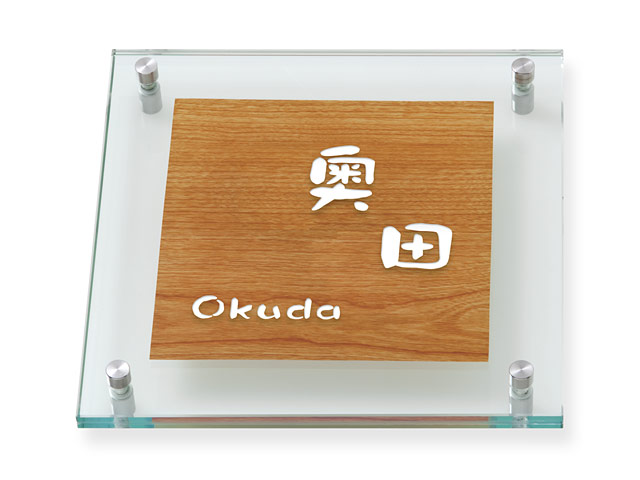 表札 YW-8-534(ガラス+木目シート) やわらぎ W200×H200mm