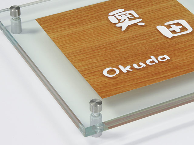 表札 YW-7-523(ガラス+木目シート) やわらぎ W200×H200mm