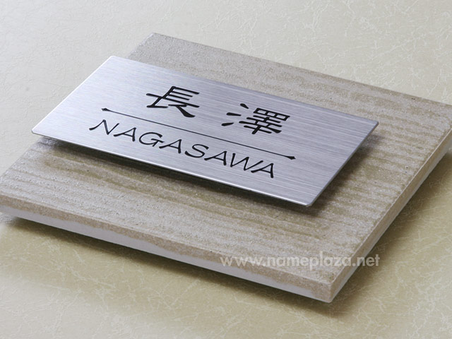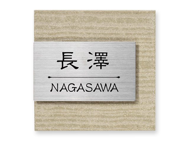 表札 MO-Y3-618(ムウル/薄茶系タイル+長方形ステンレス) W144×H144mm