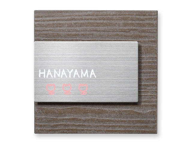 表札 MO-S4-SC3(ムウル/茶系タイル+正方形ステン/筆記体セレクト) W144×H144mm