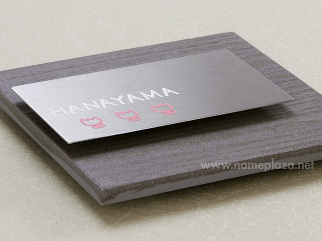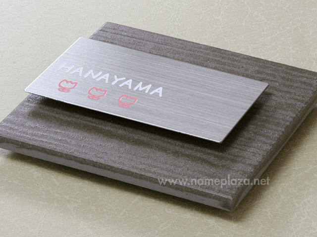 表札 MO-Y3-SC1(ムウル/薄茶系タイル+長方形ステン/筆記体セレクト) W144×H144mm