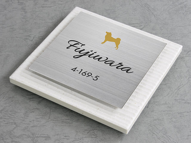 表札 SLS-S2-SC4(ステージ/白タイル+ステン/筆記体セレクト) W144×H144mm