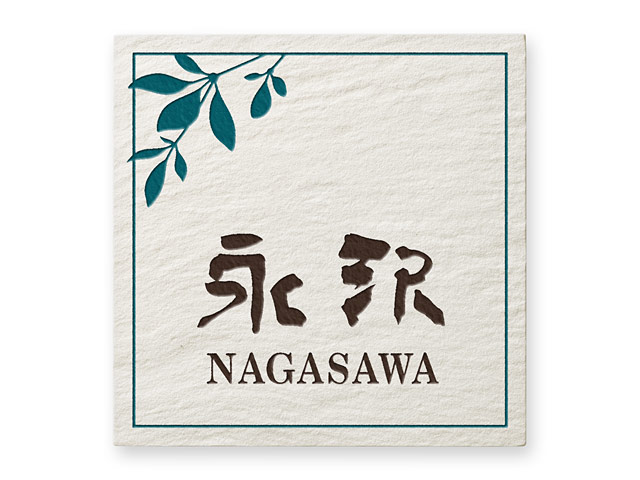 表札 SLK-2-N1(白系の和風タイル/枝葉の図案)カスミ W145×H145mm