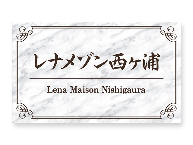 看板 銘板 (会社・オフィス・事務所・店舗・マンション・アパート等) LEM-16-N12 ライトエッチング アルミ (リーフ柄の飾りフレーム) W300×H180mm