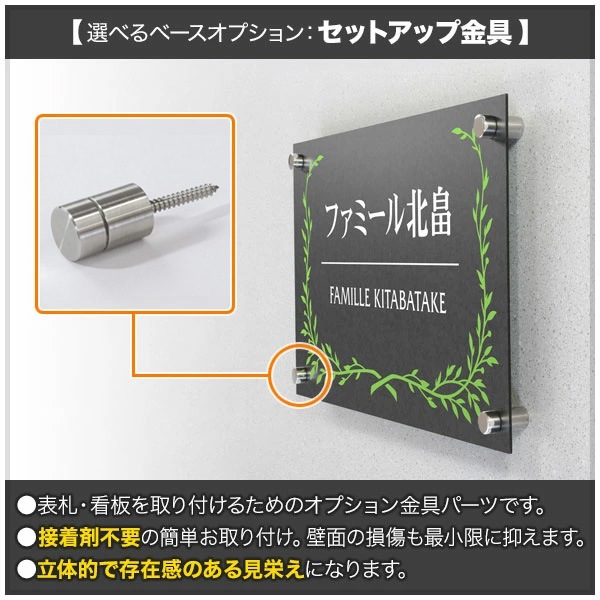 接着剤不要で看板を壁面から立ち上げてネジ留めで固定します。880円×4箇所(金具部分)+550円(穴開け加工)