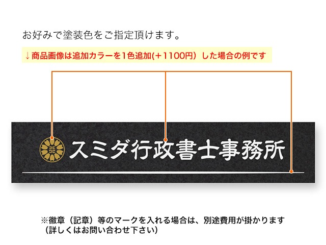 色指定と塗分け方や(例:上段漢字は黒、下段英字は白)文字配置の指定など(例:漢字の斜め配置を希望)