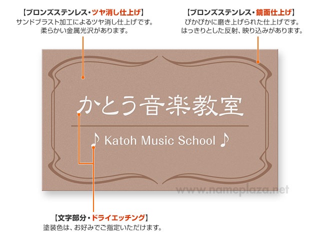 看板 銘板 (会社・オフィス・事務所・店舗・マンション・アパート等) BRDM-R-N10 (アールヌーヴォー調フレーム) FB銘板 ドライエッチング W300×H180mm