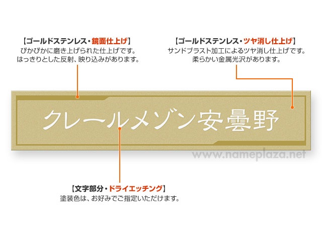 ゴールドステンレス、サンドブラスト仕上げ