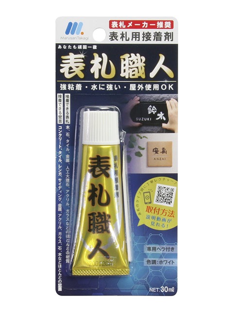 接着できる表札:木、石、タイル、金属、人工大理石、アクリル、ガラスなどほとんどの材質。