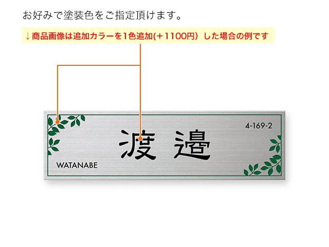 凹部はイブシ調仕上げ(凸部よりも濃い色合い)となり、文字部分カラーや図案部分カラーを指定することはできません。
