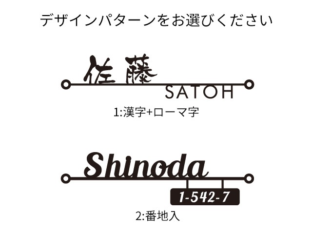 表札の表記内容をご入力下さい。英字のみ漢字のみも可能です。英字は大文字・小文字がそのまま反映されます。