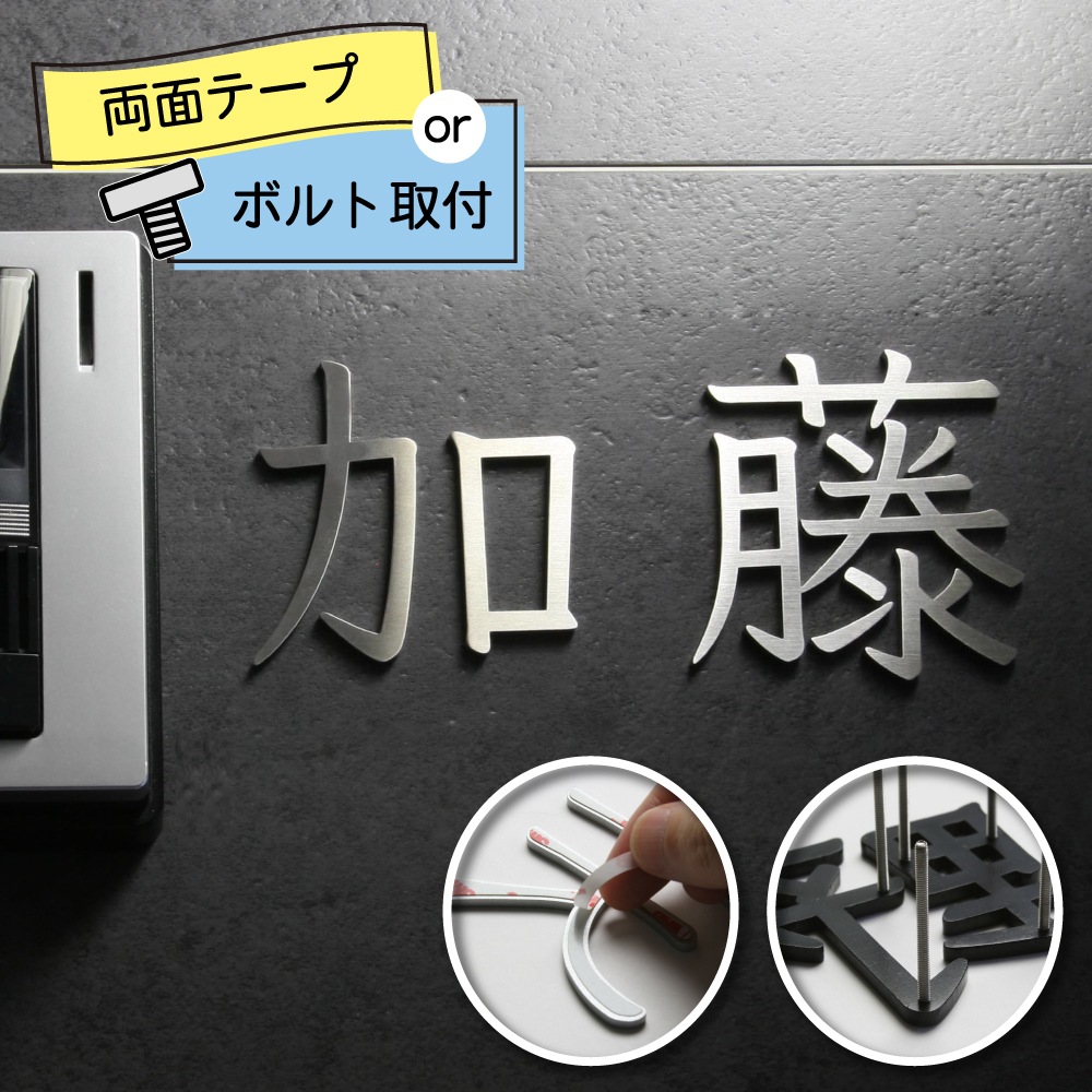 表札 切り文字 KM文字(ステンレスヘアライン/漢字)/※価格は1文字あたり