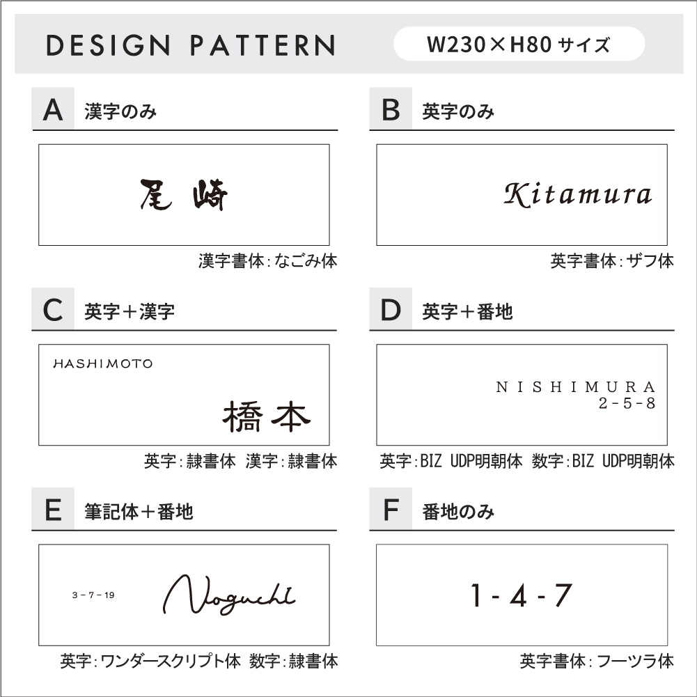 表札の表記内容をご入力下さい。英字のみ漢字のみも可能です。英字は大文字・小文字がそのまま反映されます。