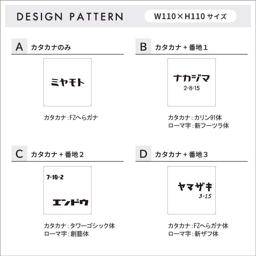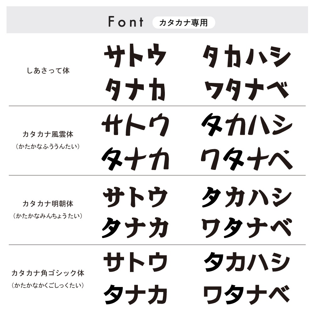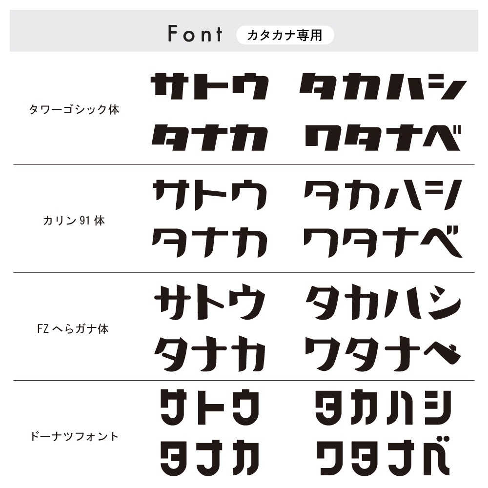 ※カタカナ・数字のみとなります、和文・英文には対応出来かねます。
