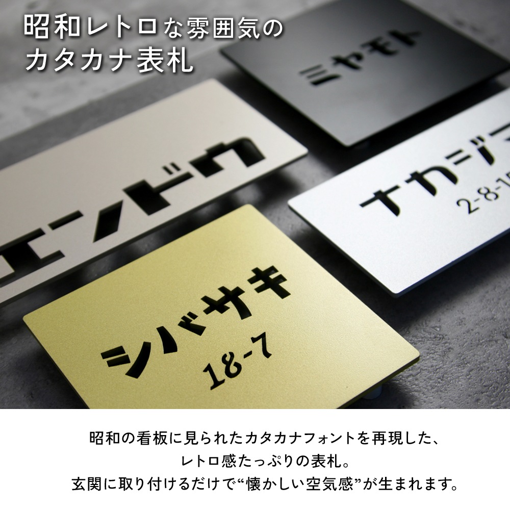 表札 ステンレス 昭和のカタカナに着目したおしゃれなレトロ表札 [ヨコモジ]YKM