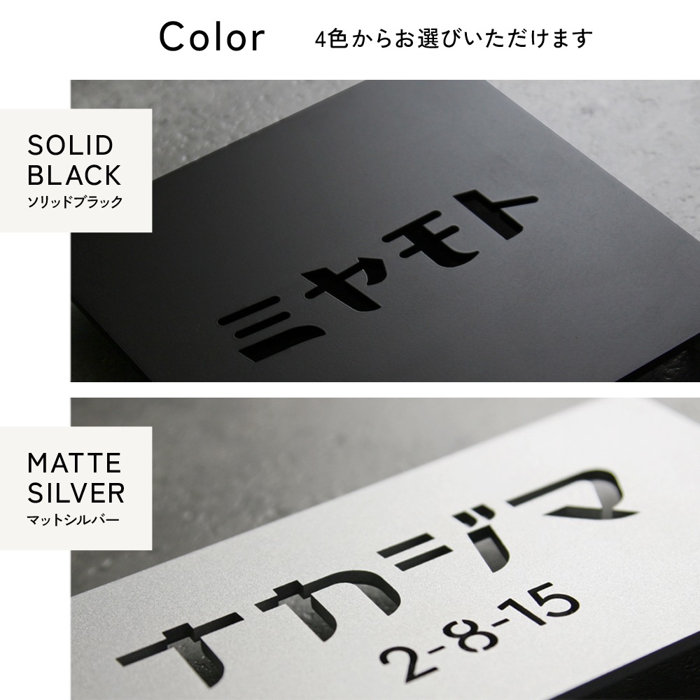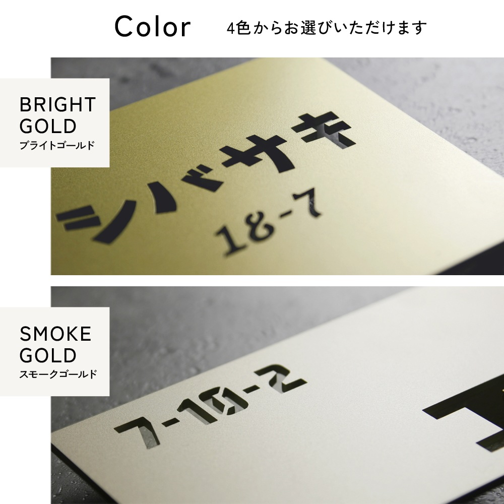 カラー:ソリッドブラック、マットシルバー、スモークゴールド、ブライトゴールド