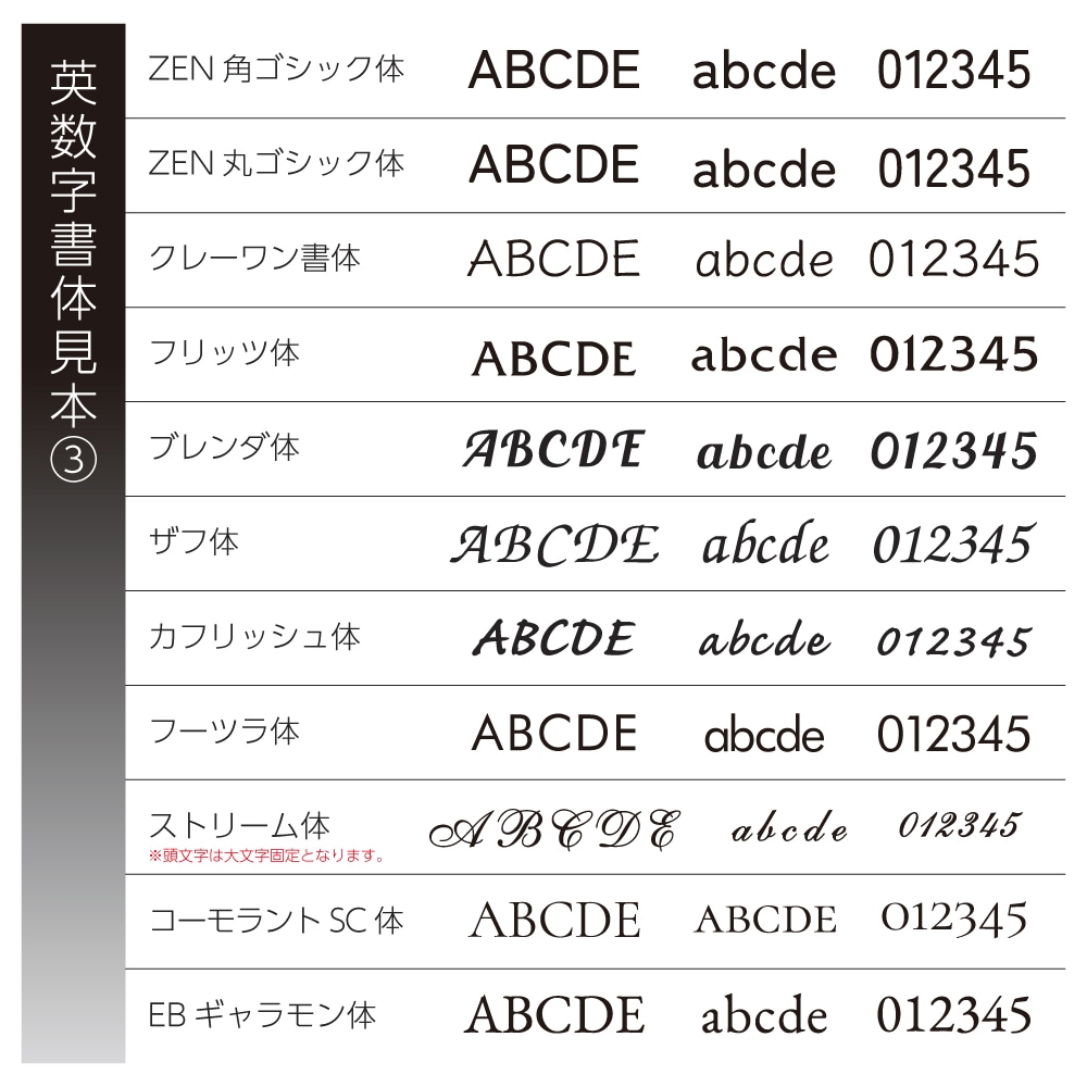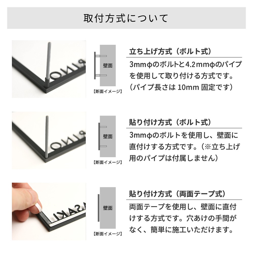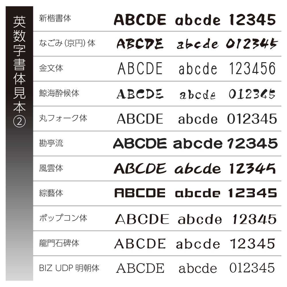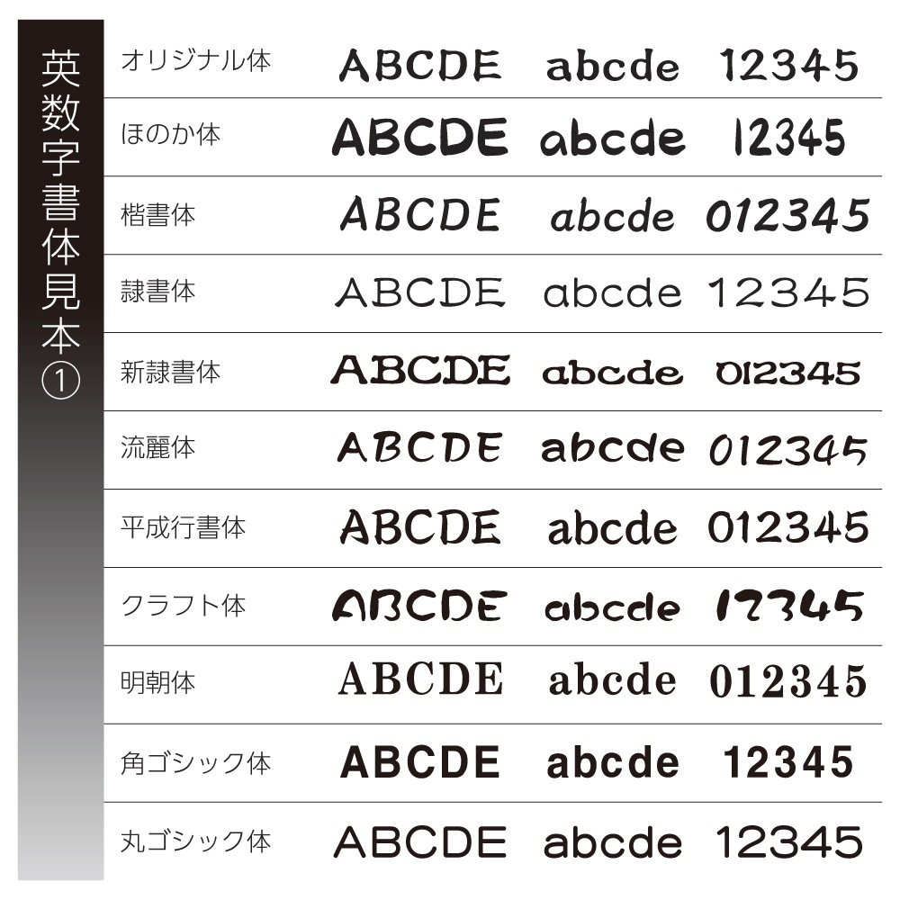 表札の表記内容をご入力下さい。英字のみ漢字のみも可能です。英字は大文字・小文字がそのまま反映されます。