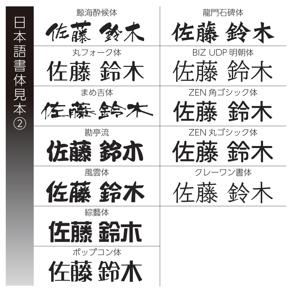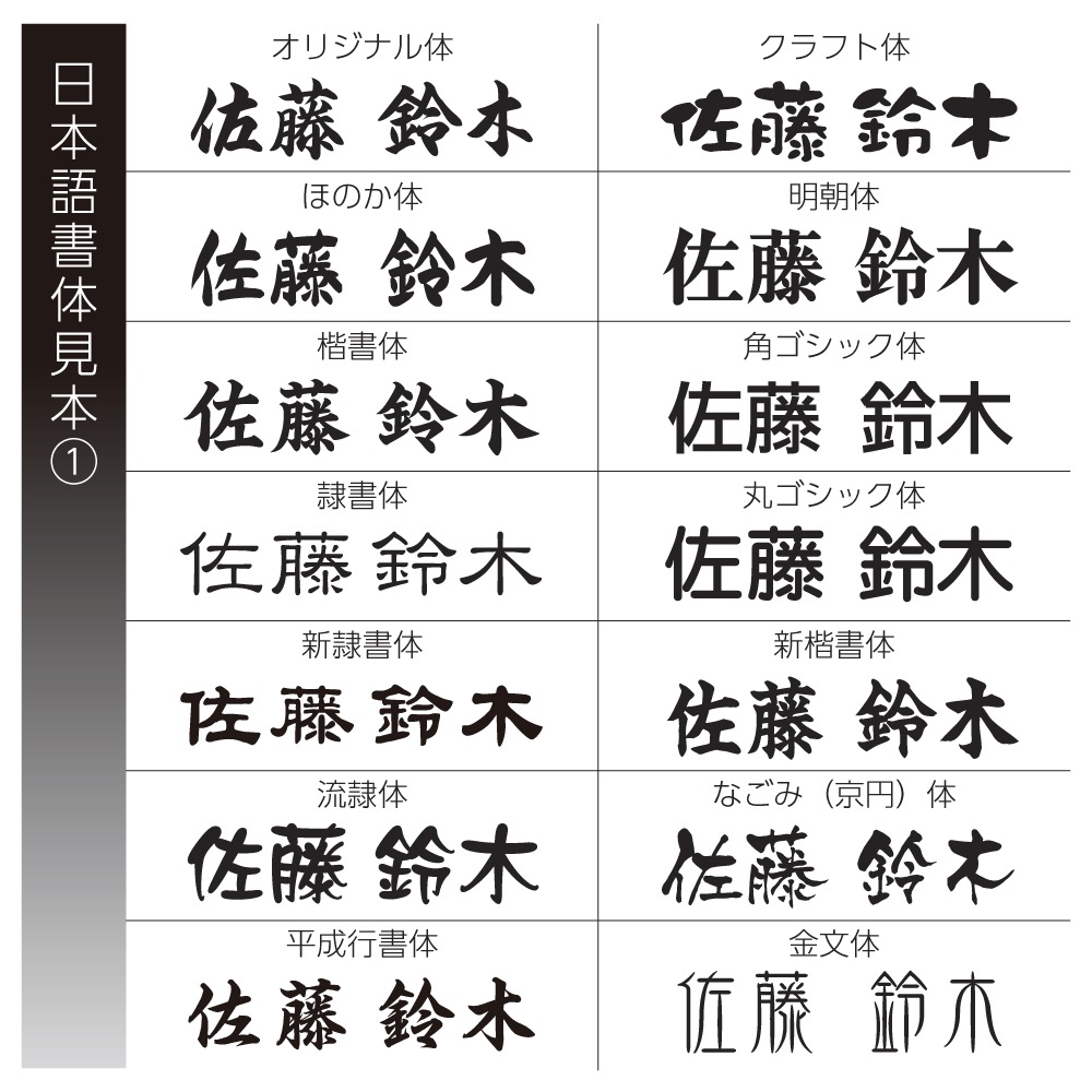 色指定と塗分け方や(例:上段漢字は黒、下段英字は白)文字配置の指定など(例:漢字の斜め配置を希望)