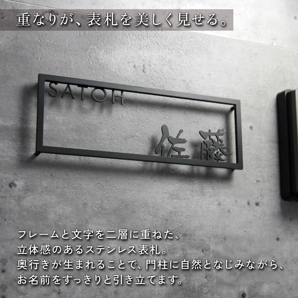 表札 影まで美しいダブルレイヤー設計 ステンレス表札【レイヤフレーム(LAYER FRAME)】切り文字 立体フレーム WLF