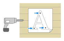※ボルトはねじ込み式になっていますので、切文字背面へのボルトの取り付けに接着剤を使う必要はありません。