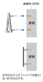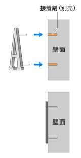 - 壁面に大きな凹凸や特殊コーティングがある場合、両面テープや接着剤が機能しない場合があります。ご注意下さい。