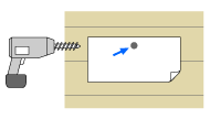 (1)で用意した型紙を取り付け位置にあて、振動ドリルなどで深さ10mm程度の下穴を開けます。