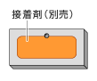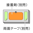 壁面にも接着剤(別売)を塗り、接着します。(1)で貼り付けた両面テープが、接着剤が硬化するまでの仮止めとして機能します。