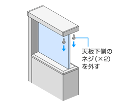 機能門柱「アクシィ1型」のサインカバー(天板)の下側に付いているネジ(×2個)を取り外します。