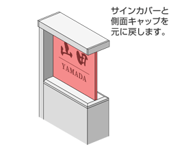 門柱上部のサインカバーを横にスライドして取り外します。